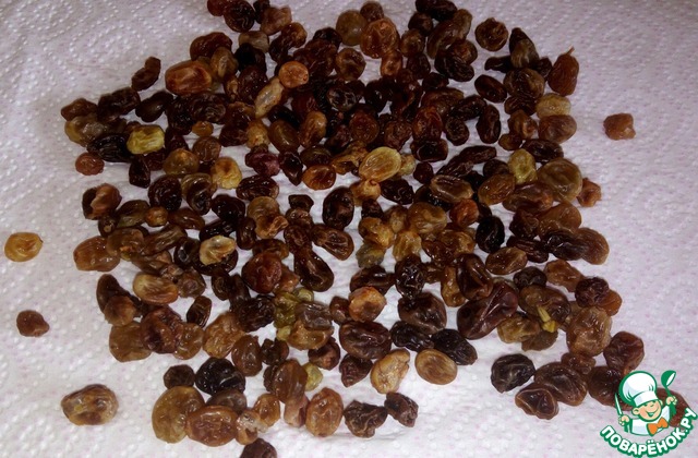 С изюма слить воду, промыть ещё раз и выложить на бумажное полотенце обсохнуть.