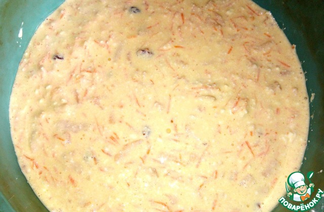 Добавить изюм, яблоко и морковь. Вот здесь миксер и блендер лучше отложить и перемешать массу вилкой или ложкой.