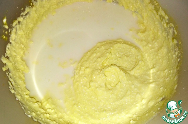 Добавить молоко. Если у вас творог суховат, количество молока можно немного увеличить.