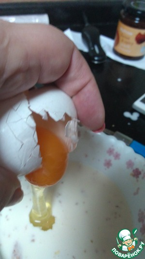 В миску с молоком, в которой мы замачивали хлеб, вбиваем два яйца, солим и перемешиваем до однородности. Если остались крошки хлеба - не важно.