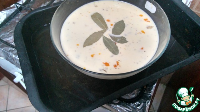 Берем большой глубокий противень, наливаем туда воды, ставим миску с мясом в эту конструкцию и отправляем на час в горячую духовку, с температурой где-то 180 градусов.