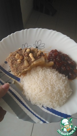 Все, блюдо готово. Подаем на стол с отварным рисом или картошкой-пюре и, если вам повезет купить или даже сделать самим, персиковым чатни. Его сладко-пряный вкус очень удачно оттенит это блюдо.