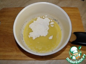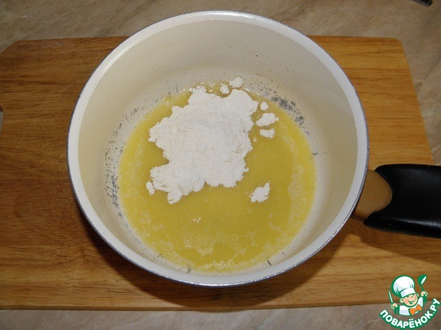 Готовим соус Бешамель: берем кастрюльку (такого объема, чтобы в нее поместился не только соус, но и свекла), кладем сливочное масло, растапливаем его на среднем огне