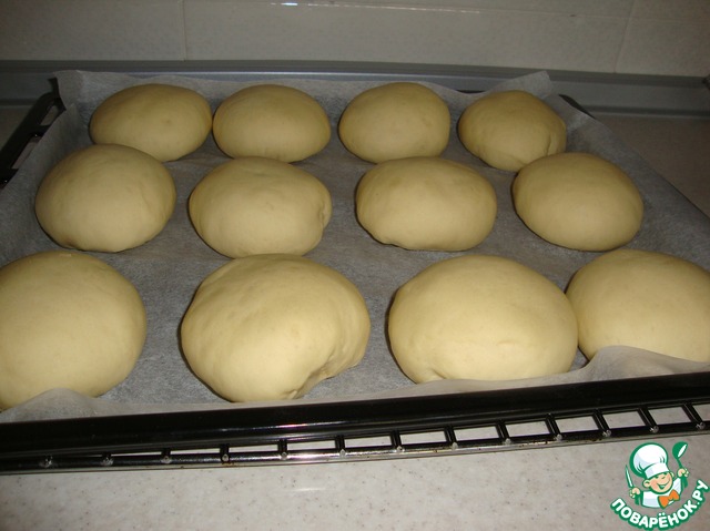Выложить булочки на противень и оставить для расстойки минут на 30-40.