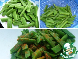Стручковую фасоль помыть, нарезать на несколько частей, отварить до готового состояния в чуть подсоленной воде.