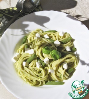 Классический соус песто имеет три неизменных ингредиента – кедровые орешки, базилик и пармезан. Мы сегодня приготовим соус песто с использованием грецких орехов, немного нетрадиционный, но очень вкусный! В этом рецепте можно использовать спагетти из цельнозерновой муки, тогда блюдо получится совершенно диетичным. Этот рецепт также становится более облегченным за счет замены пармезана наполовину на свежий сыр, а также добавления стручковой фасоли.