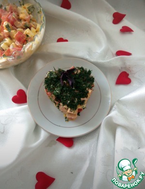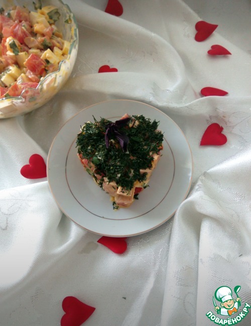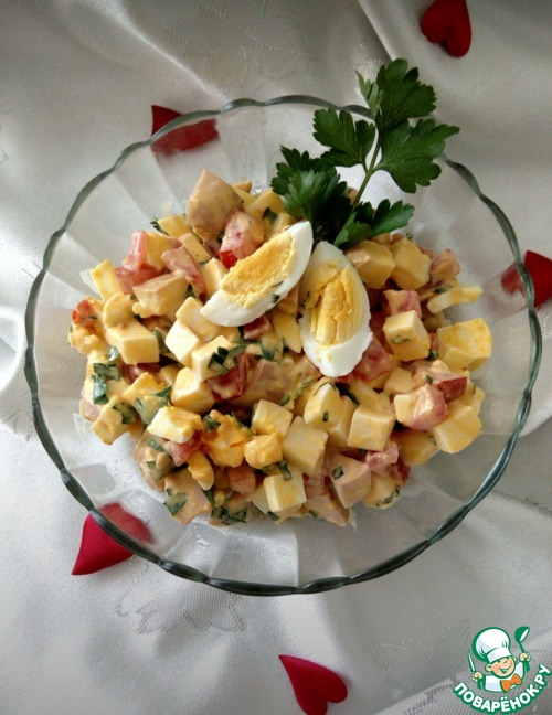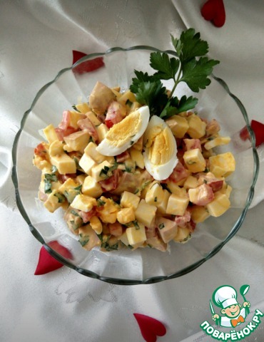 Петрушки не было, заменила рукколой, колбасный сыр тоже пришлось заменить маасдамом, в остальном не отступила) для меня салат тяжеловат, мужу понравилось) Спасибо за идею!