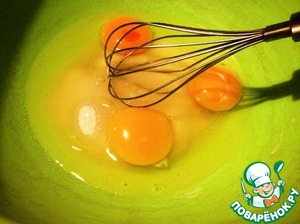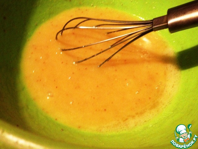 Продолжая взбивать добавить растительное масло, сок и цедру апельсина. -