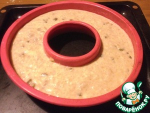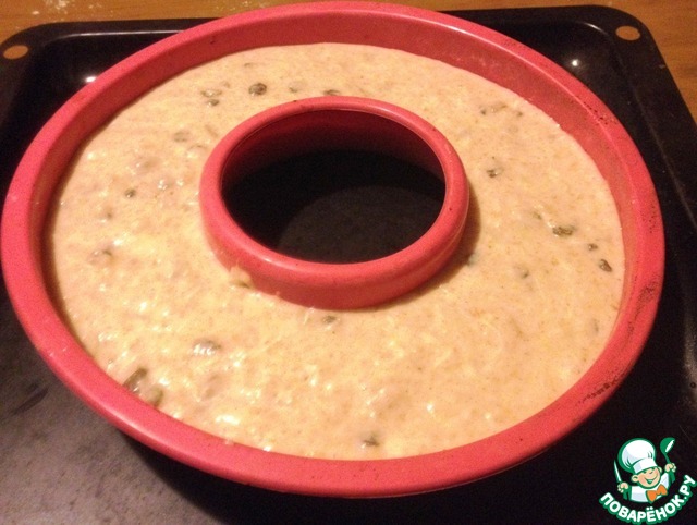 Выложить в силиконовую форму и поставить в разогретую до 180С духовку. Выпекать 49 минут.