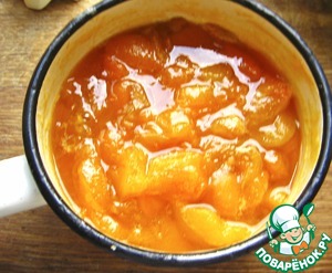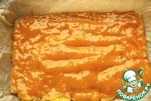 В абрикосовую начинку положила только 100 гр сахара . Так как пюре вышло очень рідке добавила ложечку крахмала.