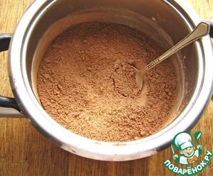 Приготовить шоколадный крем: смешать какао с крахмалом и сахаром.