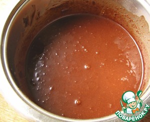 Ингредиенты для глазури кладем в емкость и ставим на несильный огонь, помешивая доводим до однородности, всего пару минут.) А вместо абрикосовой начинки - кладу абрикосовое варенье с банки.