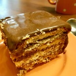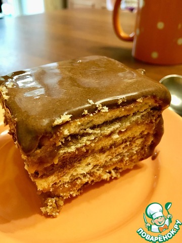 Выложить второй слой печенья и покрыть шоколадно-сливочным кремом. Продолжать таким образом, пока все ингредиенты не закончатся, последний слой должен быть шоколадным.