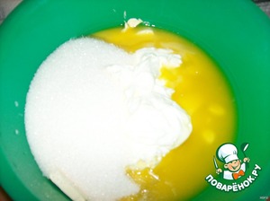 Белки взбить в устойчивую пену и аккуратно, чтобы пена не осела подмешать к тесту. Густота теста - как у негустой сметаны.