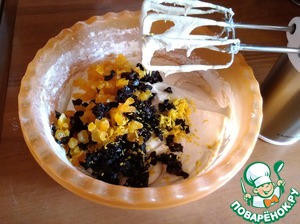 Добавить чернослив, цукаты, лимонную цедру и корицу, замесить тесто.