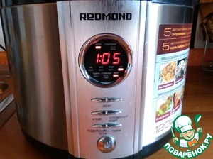 Готовить в режиме "Выпечка" или "Суп" для мультиварок-скороварок (клапан давления открыт) 65 минут. После окончания программы оставить в режиме "Подогрев" на 5-10 минут. Остудить в чаше.
