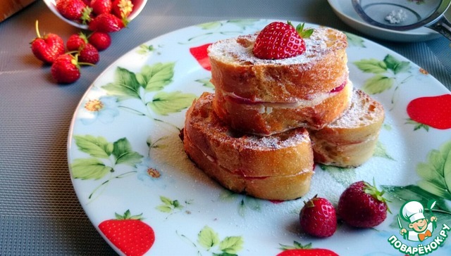 Это очень простой и вкусный летний завтрак! Гренки с ароматной ягодной начинкой в сочетании с чуть солоноватым сливочным сыром! Готовятся очень быстро, а сколько удовольствия! С таким завтраком утро точно будет добрым! :)