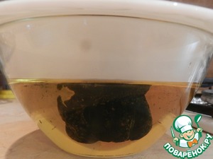 И так сам рецепт: для начала нам необходимо засолить нашу сайру в маринаде из луковой шелухи, чая, соли и сахара, для этого я воспользовалась рецептом "Скумбрия в рассоле" от Людмилы Новосёловой, единственный момент, солилась сайра не 3-е суток, а 12 часов-этого вполне достаточно.