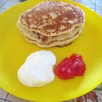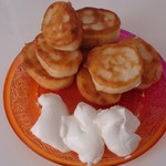 Печь блинчики, выкладывая по две столовые ложки теста в центр сковороды.