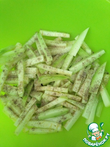 Кабачок очищаем от кожицы и режем соломкой как картофель фри.