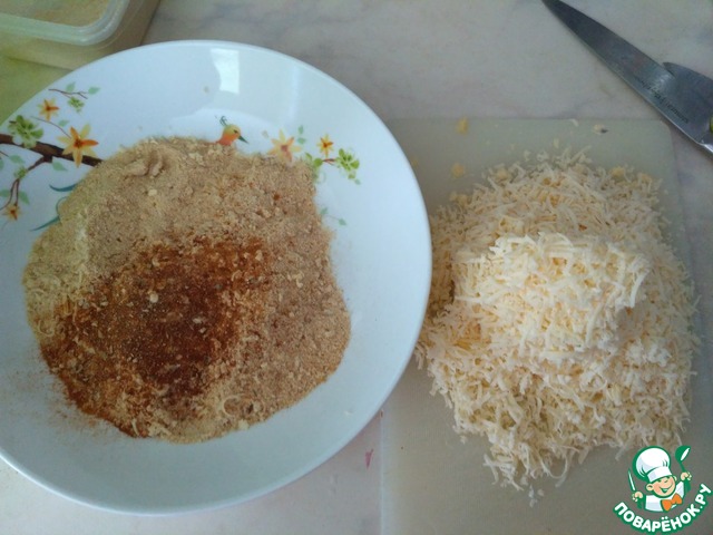Я на этом этапе не солю, поскольку соленость панировке придаст сыр. -