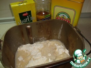 На фото подготовленные продукты, которые я уже положила в ведерко хлебопечки.