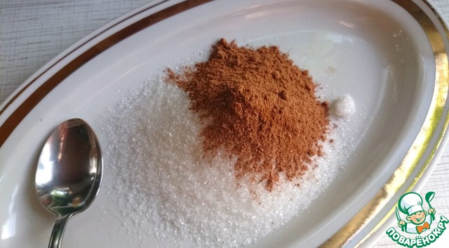 Горячими переносим рулеты в корично-сахарную смесь, обваливаем в ней с обеих сторон.