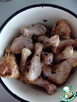 Голени моем, удаляем лишнюю влагу. Добавляем к ним мелко рубленный базилик, хмели-сунели, соль, соевый соус. Перемешиваем и оставляем мариноваться на 1 час в идеале на ночь.