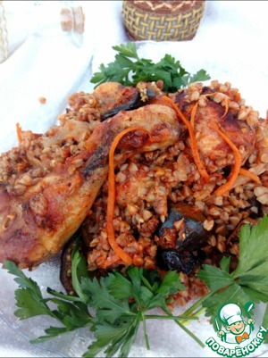 Рецепт «Гречка, запеченная с курицей и баклажанами»: