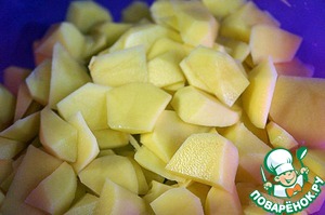 Пока варится бульон, подготовить остальные ингредиенты. Картофель почистить и порезать произвольно.