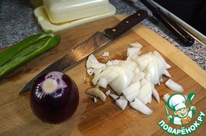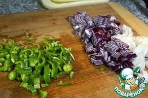 Перец освободить от семян и перегородок, порезать полукольцами.