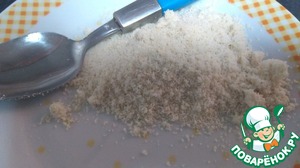 Пока соус уваривается, измельчаем орехи кешью до мелкой однородной крошки (чем мельче, тем лучше). Кешью в принципе, можно заменить на миндальный орех. Вот примерно так.