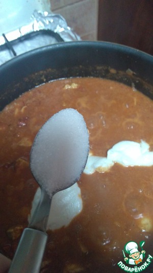 Добавляем 1 чайную ложку сахара (можно больше, если помидоры очень кислые)