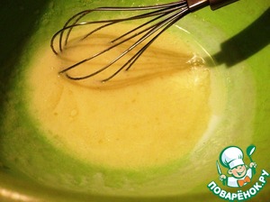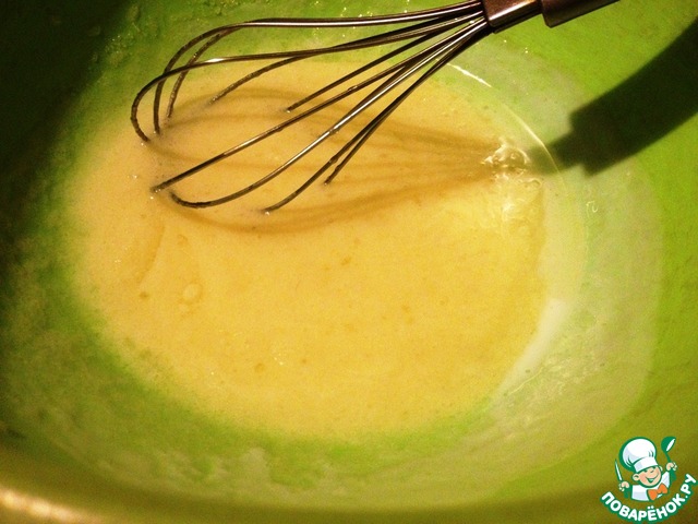 К яйцам добавить кефир и оливковое масло. Перемешать до однородности.