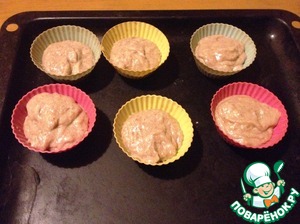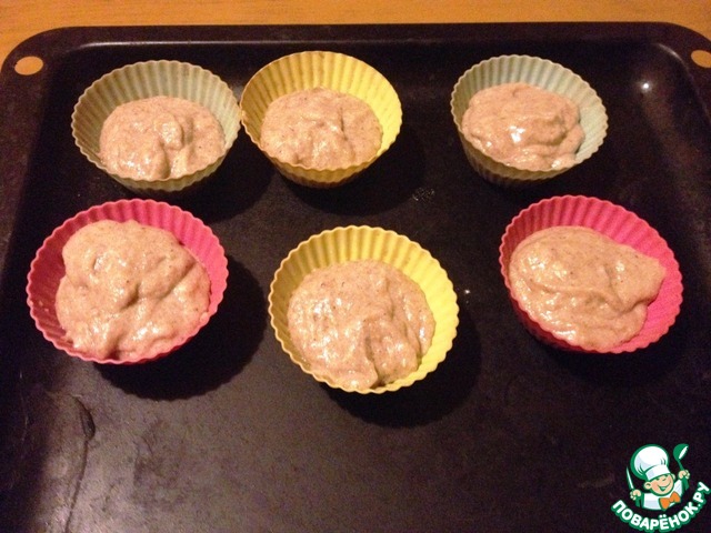 Выложить тесто в силиконовые формы для маффинов (металлические придётся смазать маслом) и поставить в разогретую до 180С духовку.