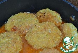 Выложить котлеты в сотейник с толстым дном или сковороду.