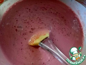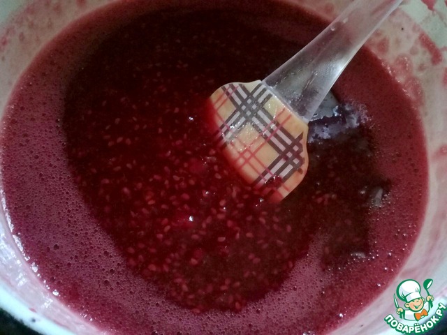 В горячей малиновой массе, растворить набухший желатин и полностью остудить. -