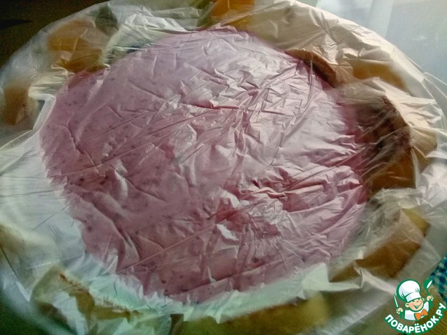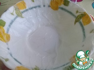 Миску выстелить пищевой пленкой. -
