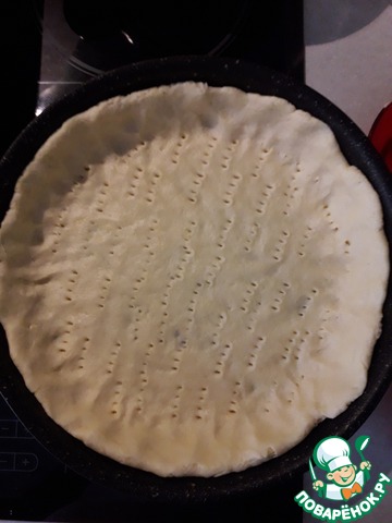 Протыкаем тесто вилкой на донышке формы. -