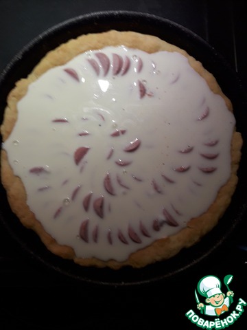 Если сметана не сильно густая (как у меня), то будет немного жидковато и может утечь за край пирога (но это не критично и вкус не меняет). -