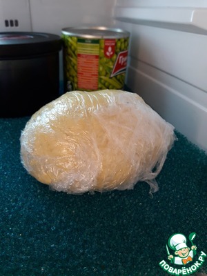 Готовый шарик теста обернуть пищевой пленкой и убрать в холодильник на час.