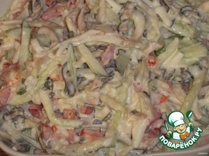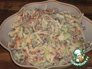 Решила вчера на ужин салатик сообразить, залезла в холодильник и... намешала всего что люблю, получилось очень даже ничего, мои оценили. )))