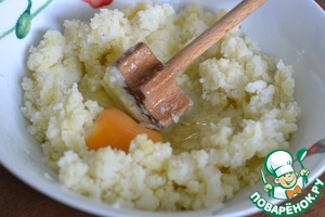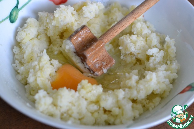 Приготовить пюре, добавить щепотку черного перца и яйцо.