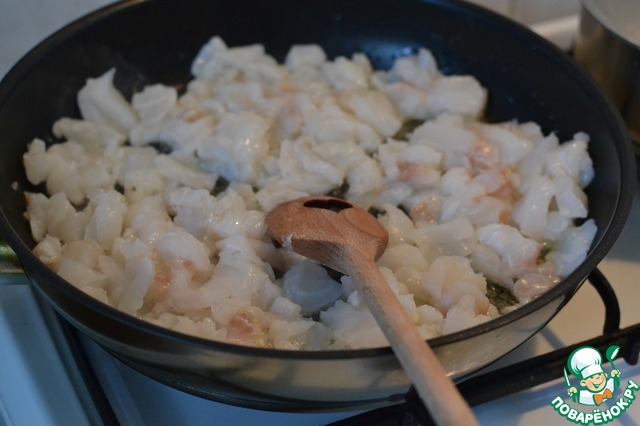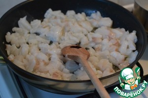 Рыбу нарезать на средние кусочки и слегка обжарить на подсолнечном масле.