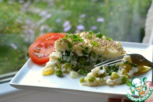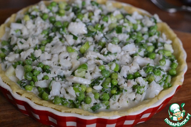 Ингредиенты для «Киш с рыбой, луком и горошком»: