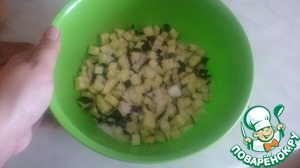 Пока овощи обжариваются, подготавливаем тесто. В воду добавляем чайную ложку соли, перемешиваем и постепенно добавляем муку. Замешиваем тесто как на манты. Раскатываем пласт и режем квадратики тоже как на манты