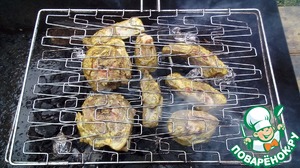 У нас погода выдалась ужасной (видите, вода в мангале?). Уж как я не крутила решетку и зонт над ней...