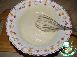 Теперь необходимо перемешать продукты, чтобы тесто было без комочков. Оно должно быть, как на фото, в меру густым и не сильно жидким, немного гуще консистенции теста для блинов.