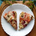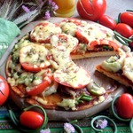 [+5]Правда, не было сыра в пластинах, просто моцареллу нарезала тонкими кусочками. Из этого количества теста получилась пицца с тоненьким основанием, что важно для этого блюда!!! Так, что беру на вечное пользование, с твоего позволения!