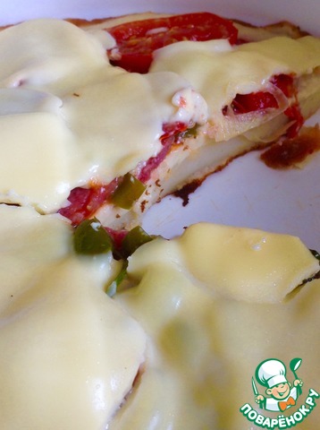 Накрываем все хорошо плавленым сыром (лучше стараться все закрыть) укладывать по своему усмотрению.